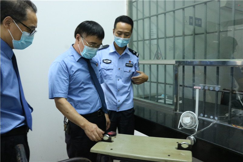 在监区,金着作一行对看守所监控设施运行情况、在押人员管理教育、医疗保障和食品卫生等进行了全面细致的检查,并与看守所同志进行交流,确保节日期间看守所安全稳定,切实维护在押人员的合法权益,做到履职到位,监督到位,疫情防控到位。