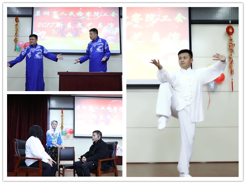 张灯结彩乐联欢,欢声笑语迎新年。1月22日下午,巢湖市人民365bet官网网址是多少_365ba_beat365平台院工会举办2017新春文艺表演,在农历鸡年来临之际,全院干警欢聚一堂,纷纷登台,展示了一场精彩的文艺表演。