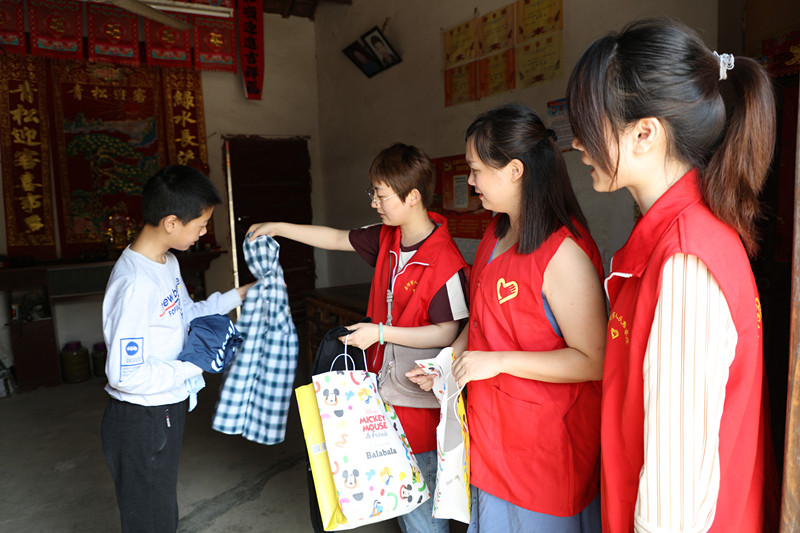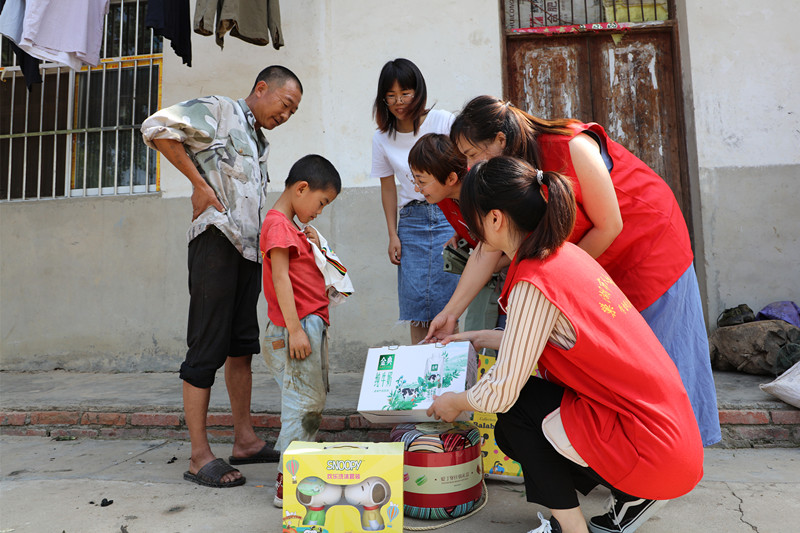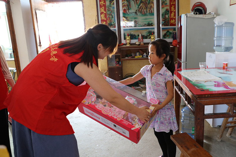 “今天是儿童节,这是给你的礼物,喜欢吗!”“小朋友,爸爸妈妈不在家,要照顾好自己,上学外出记得戴口罩。”“这是送给你的文具,节日快乐呀!”