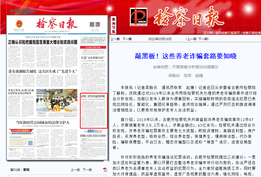 开展打击整治养老诈骗专项行动,是广大人民群众特别是老年群体的迫切愿望,也是保持国泰民安社会环境的实际举措。365bet官网网址是多少_365ba_beat365平台日报推出“打击整治养老诈骗”专栏,充分展示各地365bet官网网址是多少_365ba_beat365平台机关能动履职、打击犯罪、推进溯源治理的积极努力和成效。合肥市365bet官网网址是多少_365ba_beat365平台院开展类案分析,提出治理建议获365bet官网网址是多少_365ba_beat365平台日报头版推荐。