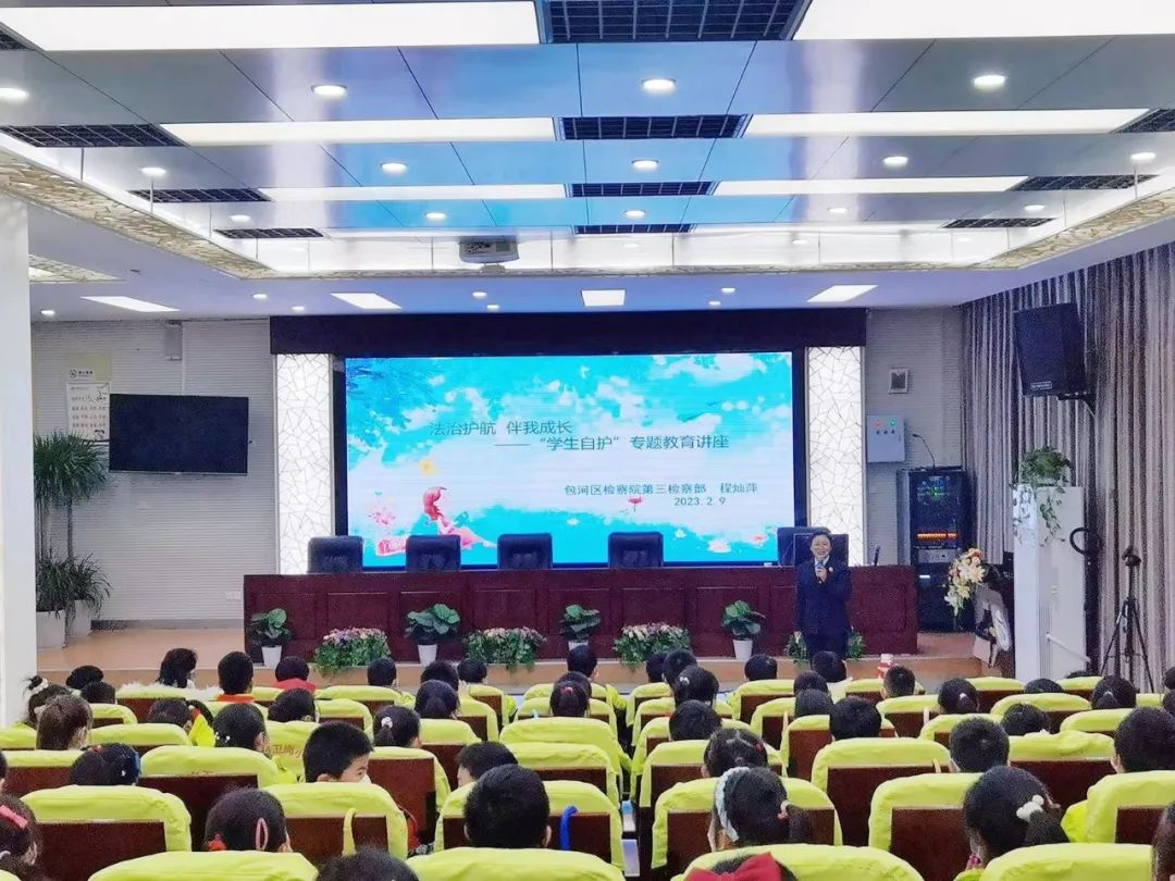 2月9日下午,合肥市包河区人民365bet官网网址是多少_365ba_beat365平台院未检干警、卫岗小学法治副校长程灿萍走进合肥市卫岗小学南校区给近二百名一至三年级的小学生带来一堂“学生自护”专题讲座。讲座从居家安全、网络安全、交通安全、防拐防性侵四个方面展开,通过浅显易懂、生动有趣的讲解,让孩子们能够增强安全防范意识,提高自我保护能力。讲座结束后,未检干警跟孩子、老师们一起在学校宣传栏张贴强制报告制度海报,并详细讲解了宣传海报中的案例。