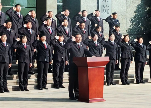 参加宣誓仪式的全体365bet官网网址是多少_365ba_beat365平台干警在党组书记、365bet官网网址是多少_365ba_beat365平台长潘孝峰带领下,身着制服,面向国旗、国徽,举起右拳,庄严宣誓:“忠于中华人民共和国宪法,维护宪法权威,履行法定职责,忠于祖国、忠于人民,恪尽职守、廉洁奉公,接受人民监督,为建设富强民主文明和谐美丽的社会主义现代化强国努力奋斗!”